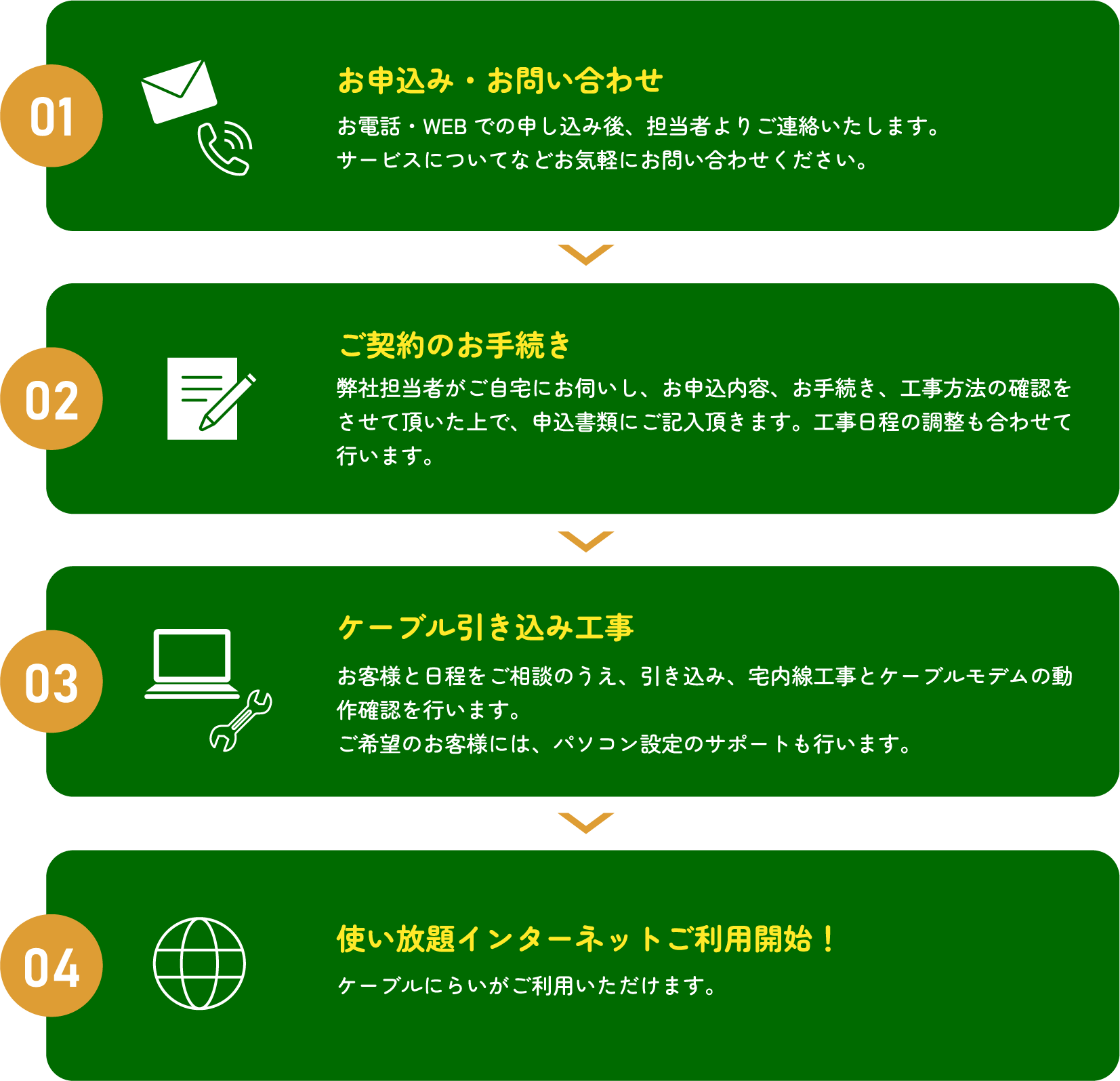 定期2年契約は、2年契約(自動更新)が条件です。2年の契約期間中に解約・休止の場合、ケーブルにらい定期契約期間解除料4,400円(税込)が発生します。